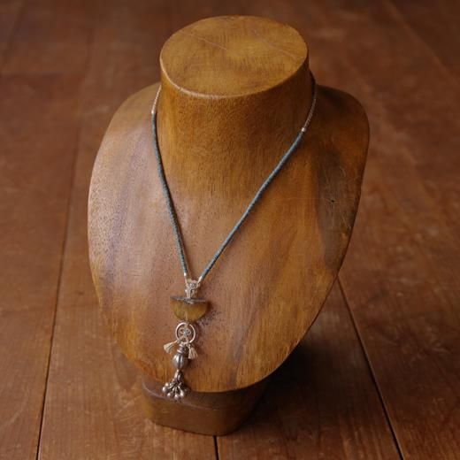 インド・カッチ地方の民族装飾シルバーを合わせたネックレス。