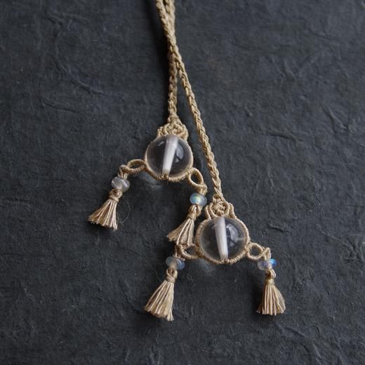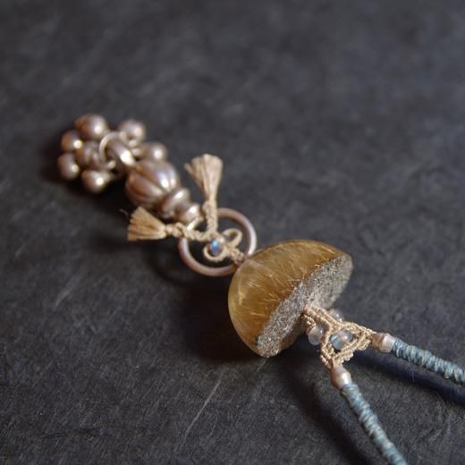 装飾ビーズ:ラブラドライト、ヒマラヤ水晶(インド・マニカラン)、シルバー(インド・カッチ)