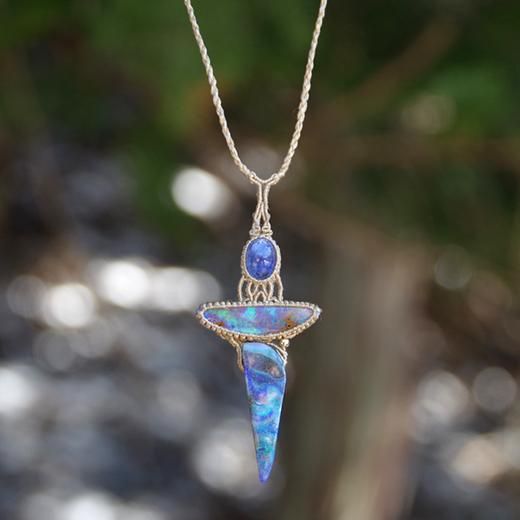 ボルダーオパール×タンザナイト ムガシルクネックレス