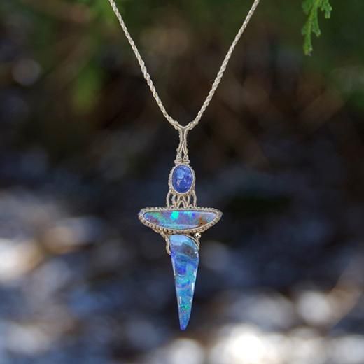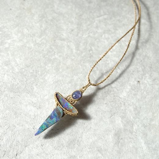 オーストラリアのオパール2つに、タンザナイトを合わせたネックレス。
