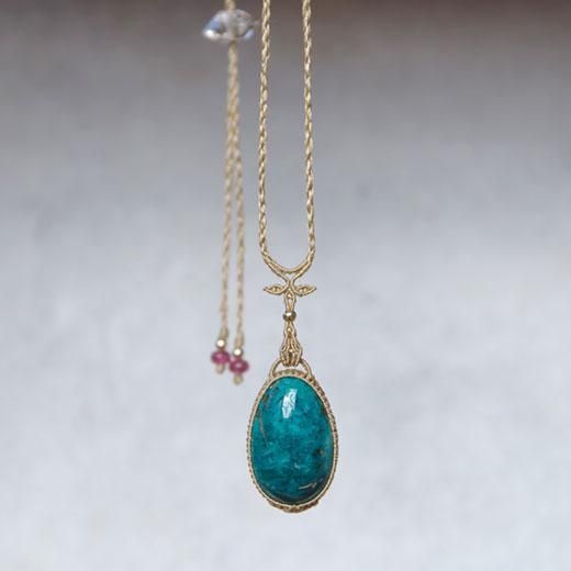 ネックレスの長さ|最長85cmまで長さ調節可能 ※留め具に水晶結晶を使用