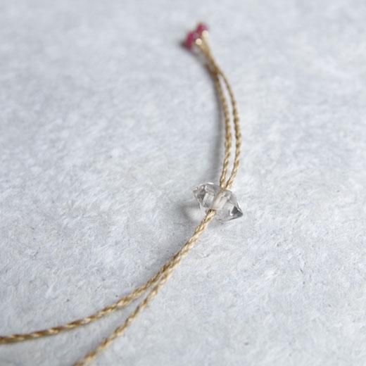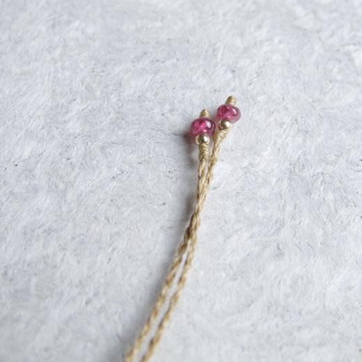 背中を飾る紐の先端には、レッドスピネルを合わせています。