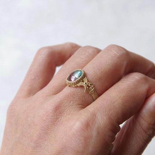 柔らかなシャンパンゴールドの輝きは肌なじみ良く、指を美しく見せてくれます。