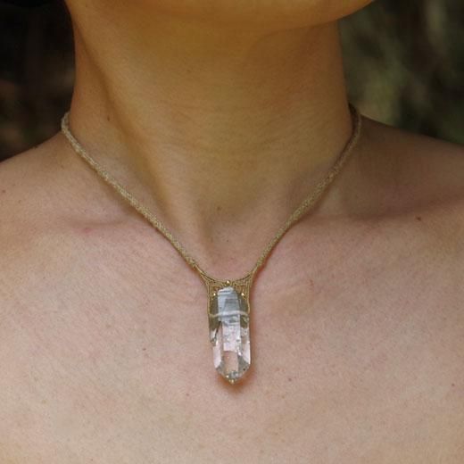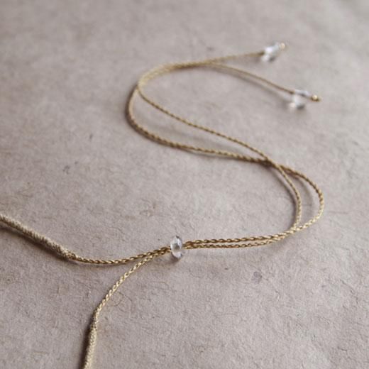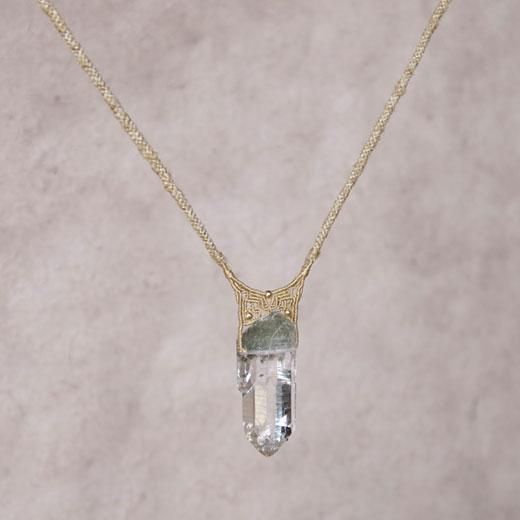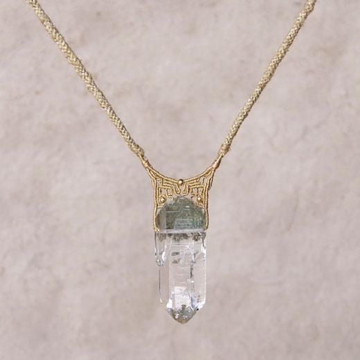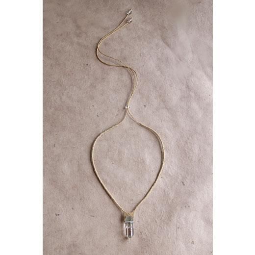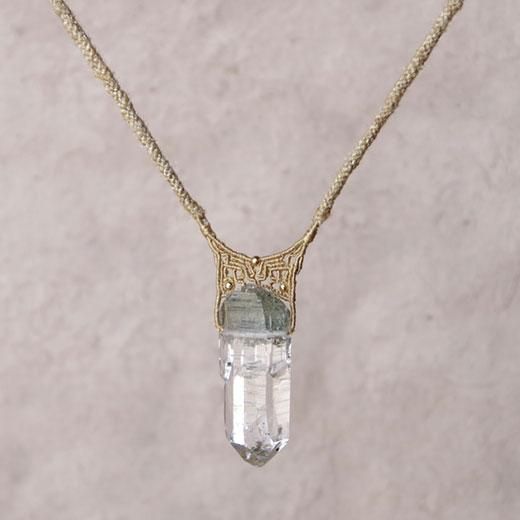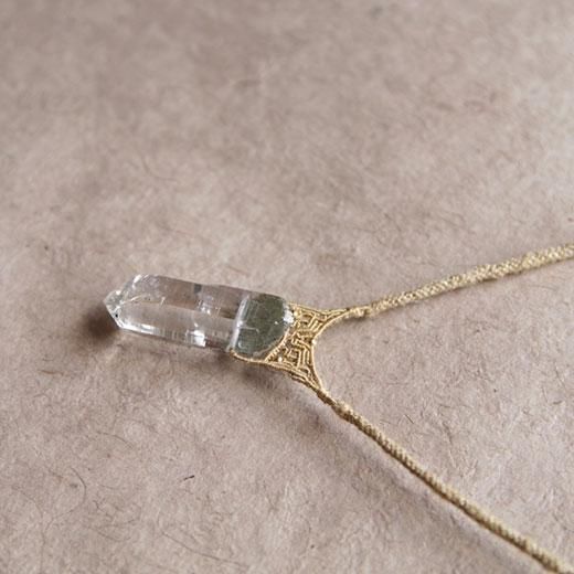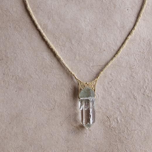 ヒマラヤの水晶の結晶を、趣の異なる2種のムガ蚕糸で編んだネックレス。