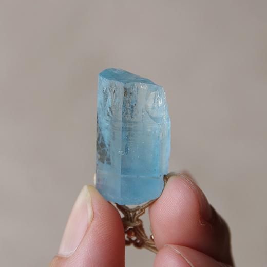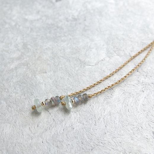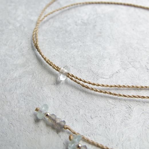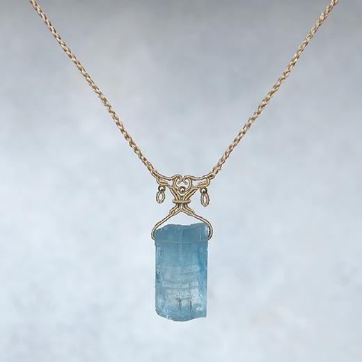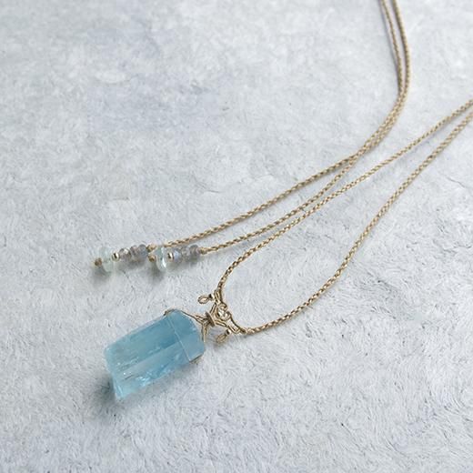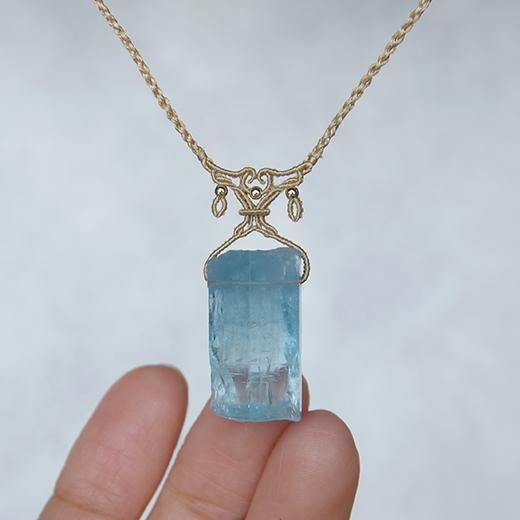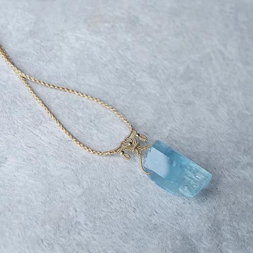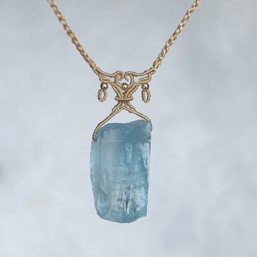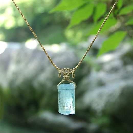 太い水柱、アクアマリンの結晶そのままを編み込んだ作品です。