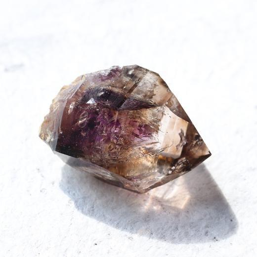 結晶の内側を満たしているスモーキークォーツは光を含むと僅かに黄金色を帯び