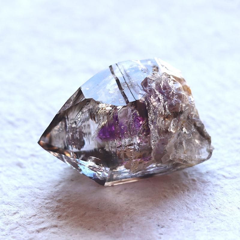 色合いは濃く鮮やかな紫色からごく淡く色づいた藤色、スモーキーから透明度の高いクリアな水晶まで幅広く