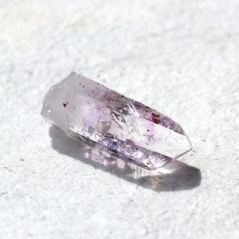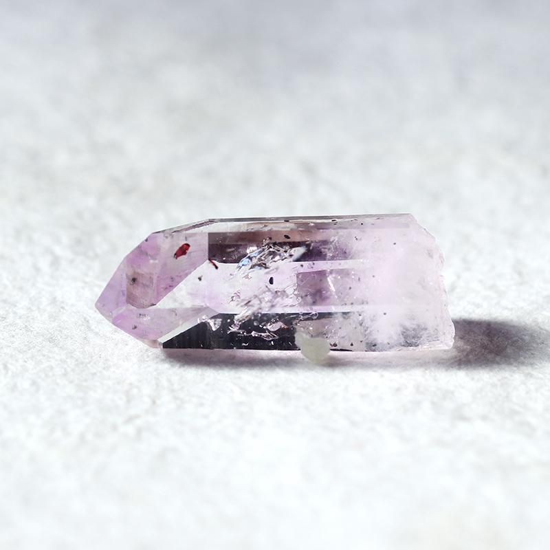 先端には色鮮やかなヘマタイトの欠片が存在感を持って浮かんでいます。
