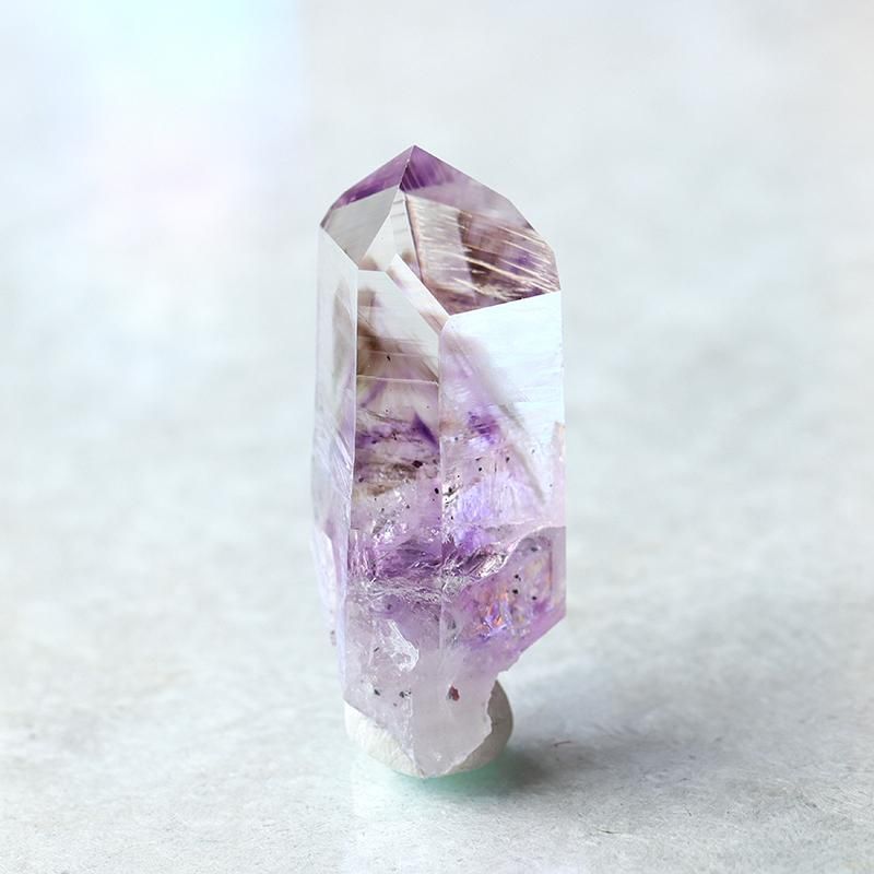 色合いは濃く鮮やかな紫色からごく淡く色づいた藤色、スモーキーから透明度の高いクリアな水晶まで幅広く