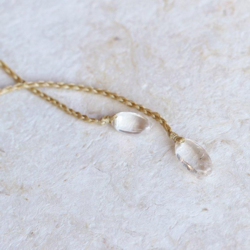 首紐には結晶から切り出し研磨したヒマラヤ水晶2粒を提げました。