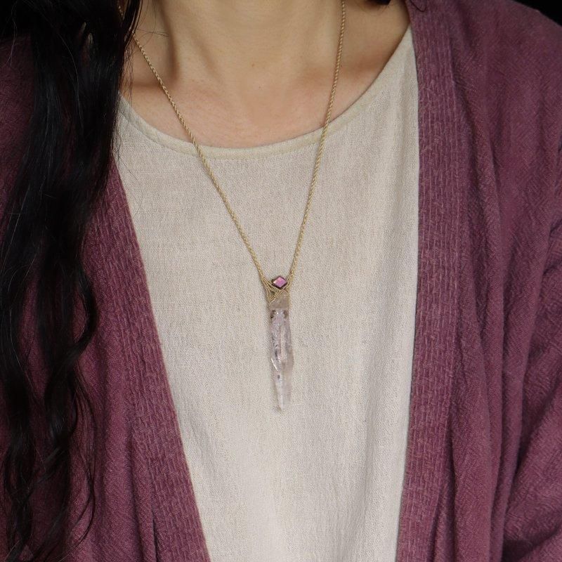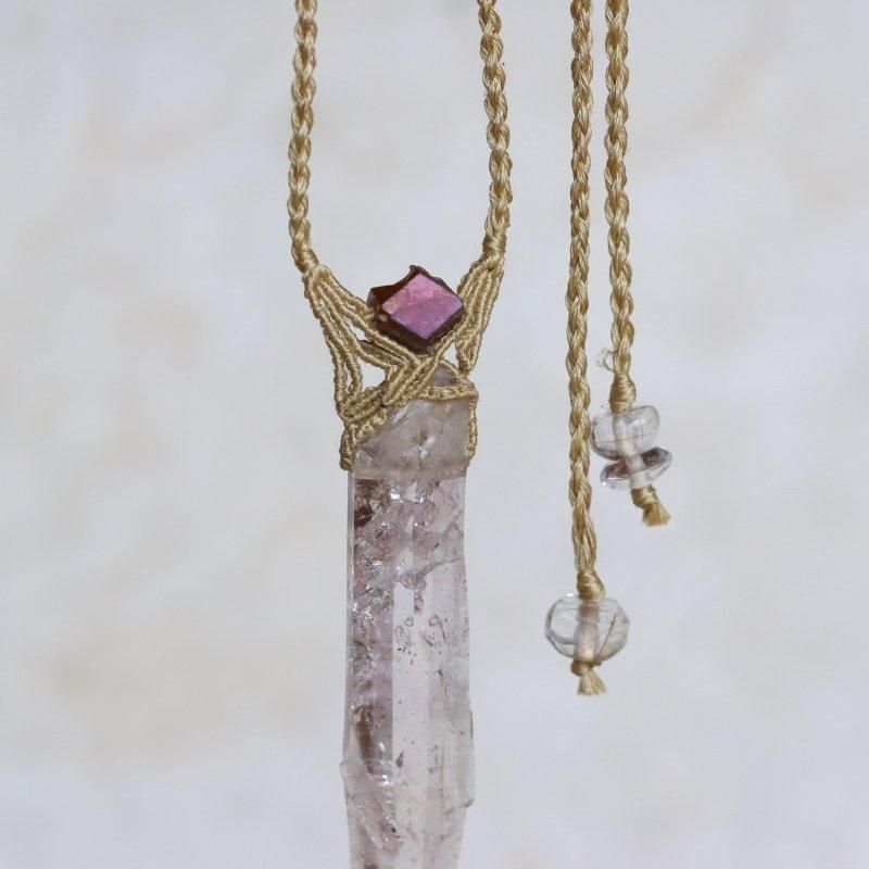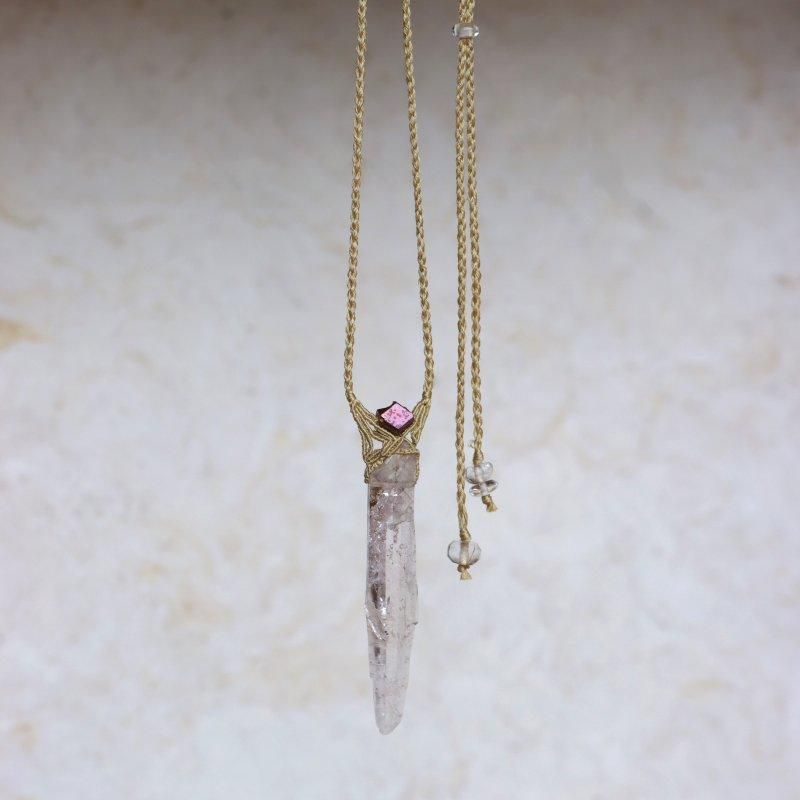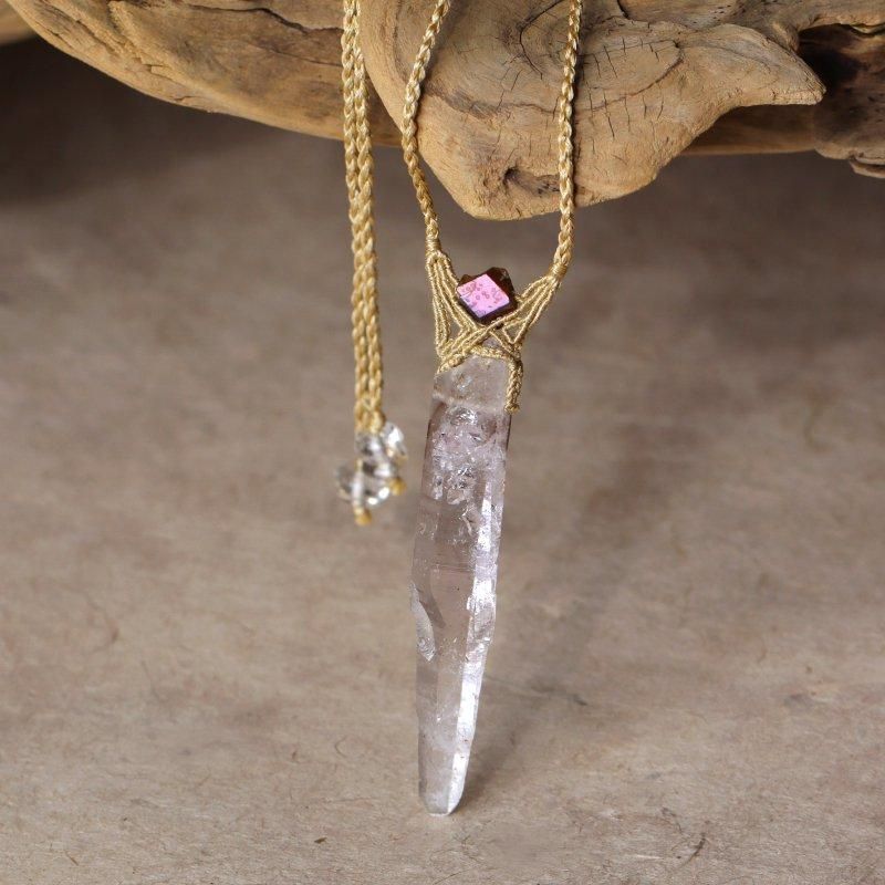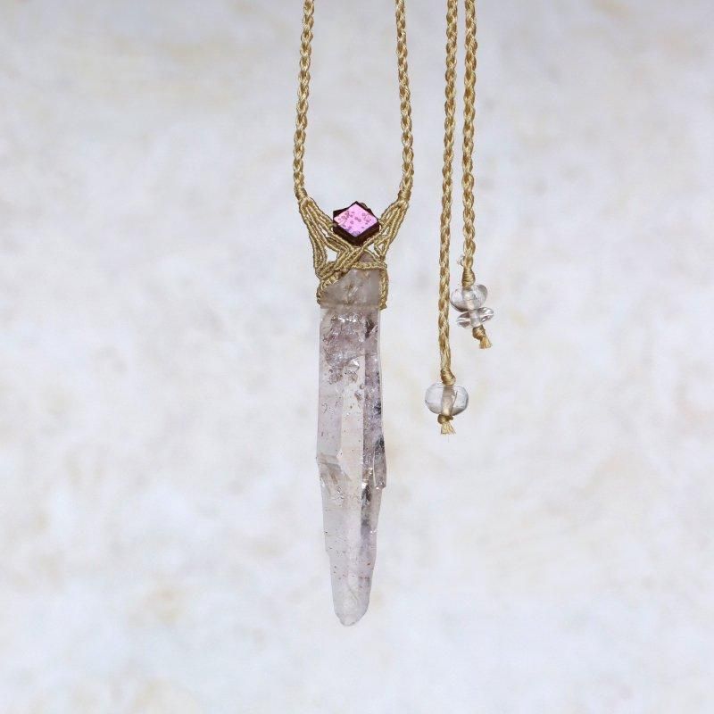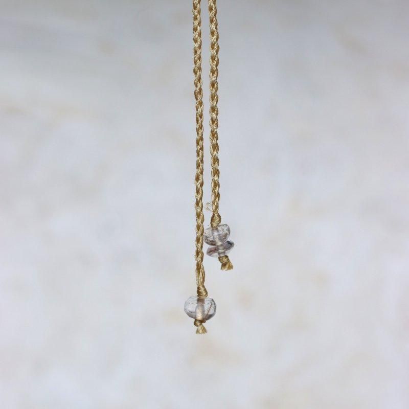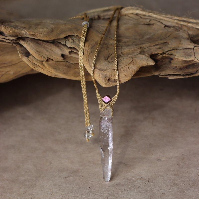 首紐には結晶から切り出し研磨したヒマラヤ水晶のタンブルを。