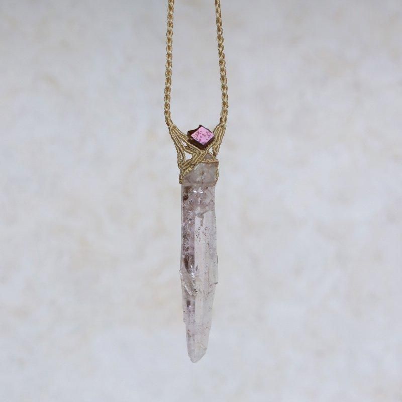 ナミビアのアメシストには珍しい、すらりとしたレーザーの形に惹かれてセレクトした結晶です。