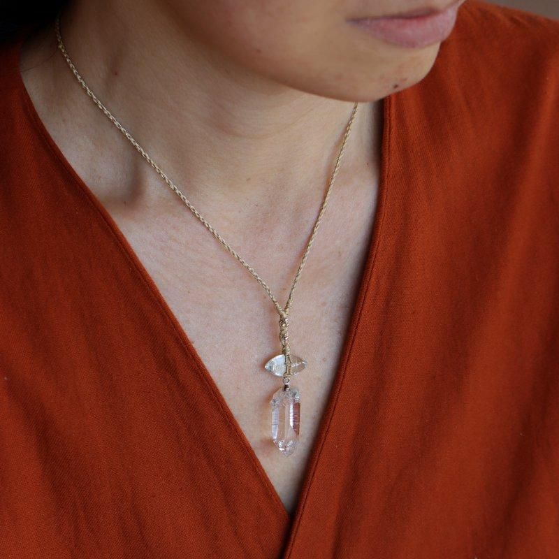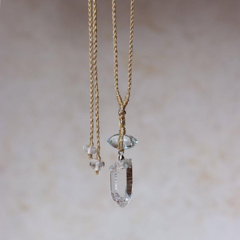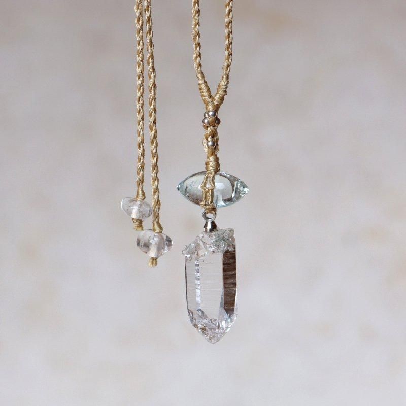 ヒマラヤ水晶×アクアマリン ムガシルクネックレス