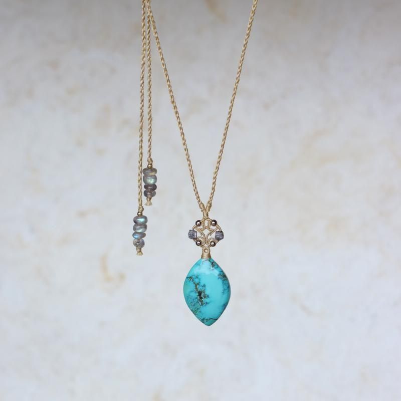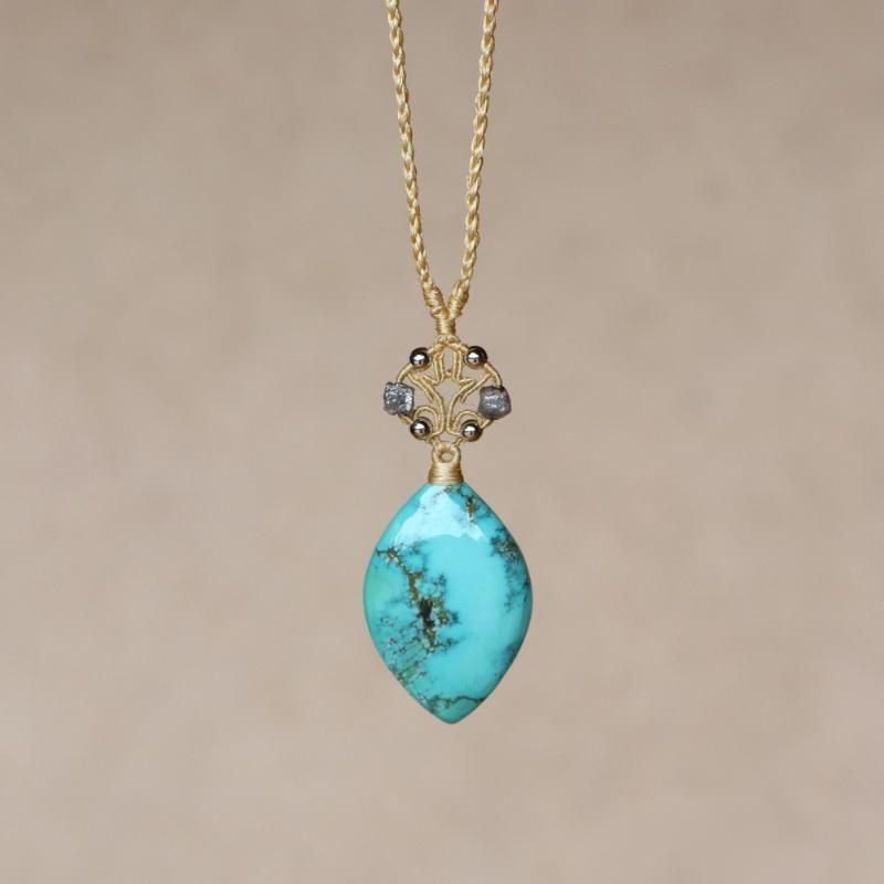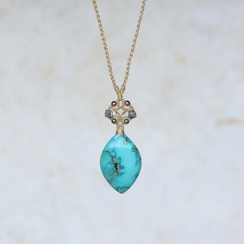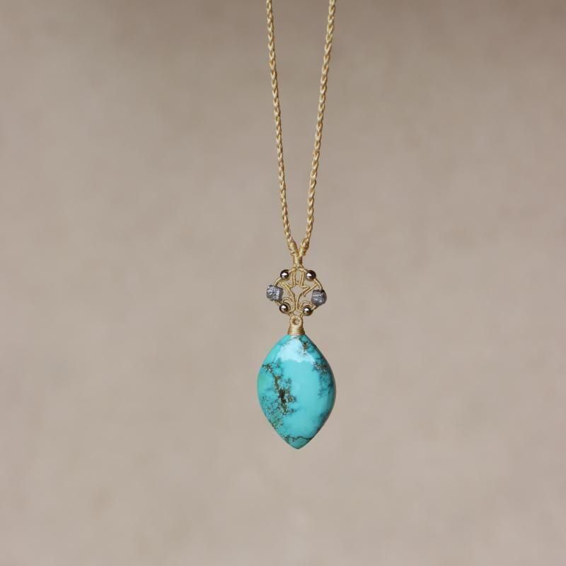 ターコイズ×ダイヤモンド ムガシルクネックレス
