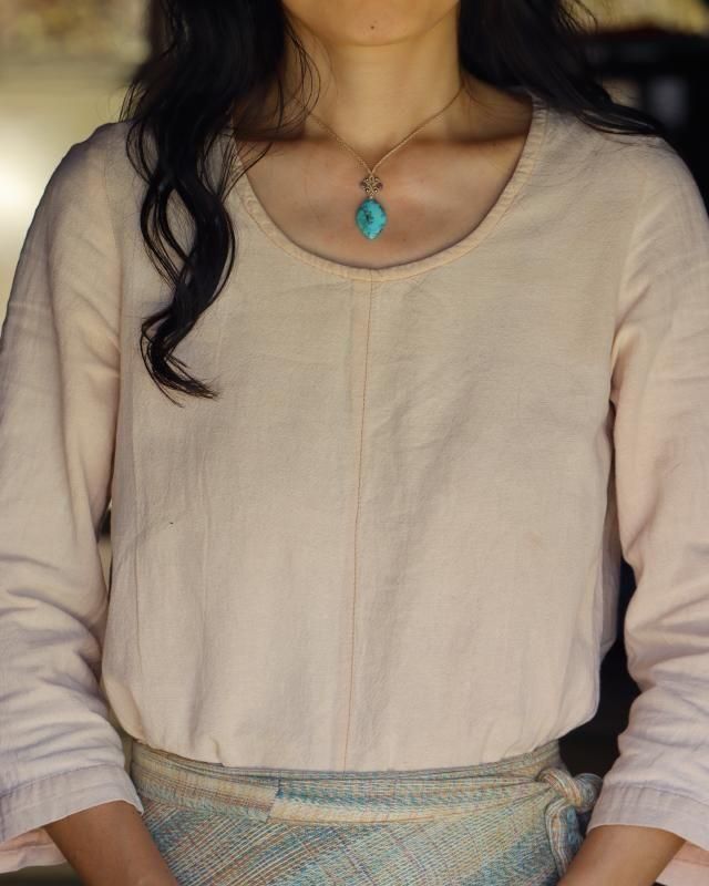 その中でも軽やかな空色が美しい、女性的なひと粒を選び ネックレスへと仕立てました