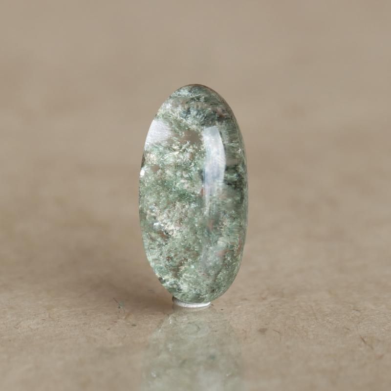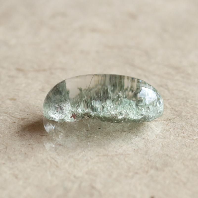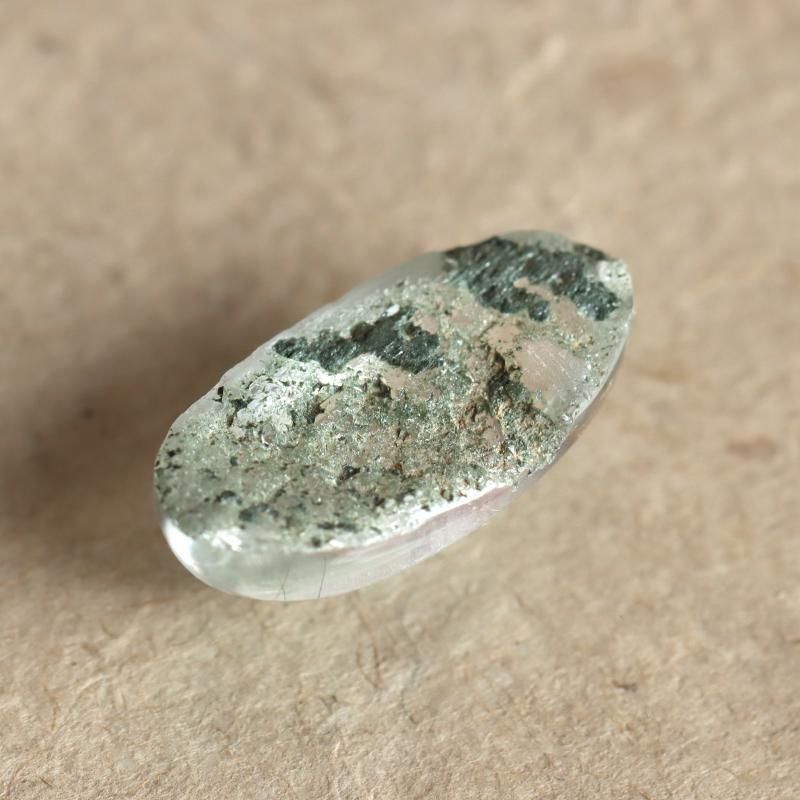 明るく暖かな 浅緑色クローライトを包み込んだ水晶です。