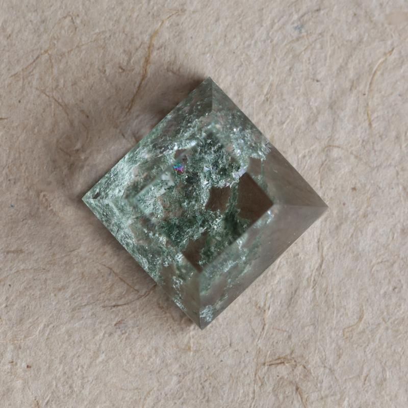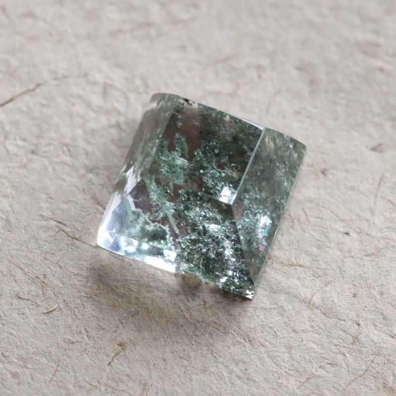まほらで結晶から選び出し、カットデザイン、研磨を行ったインド・マニハール産水晶。