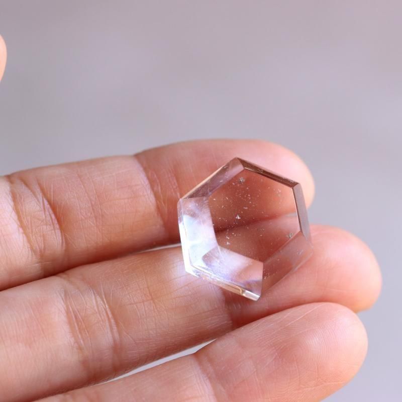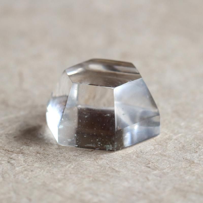 まほらで結晶から選び出し、カットデザイン、研磨を行ったインド・マニハール産水晶。
