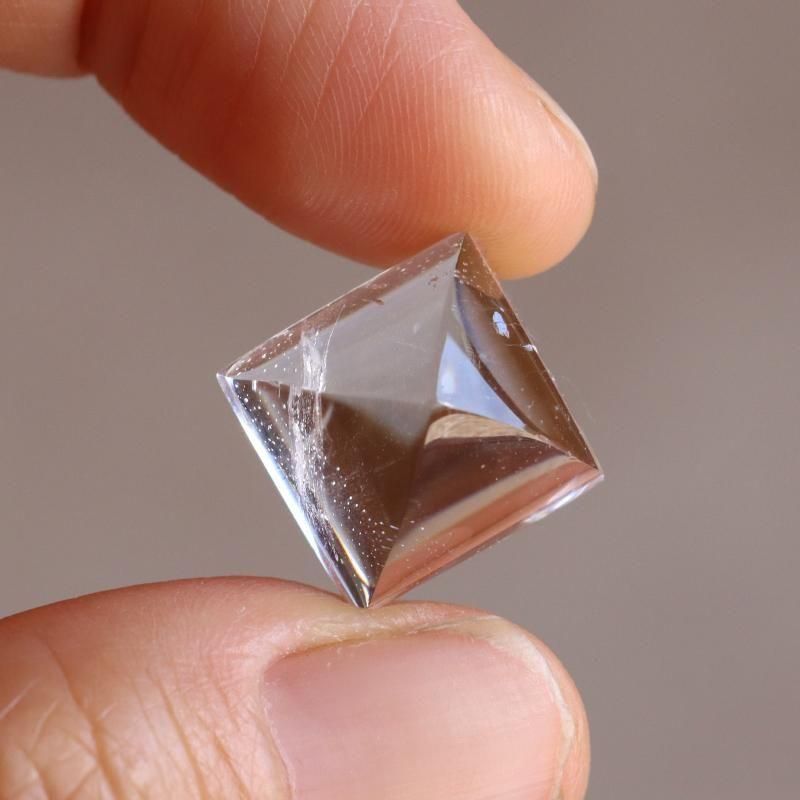 まほらで結晶から選び出し、カットデザイン、研磨を行ったインド・マニハール産水晶。