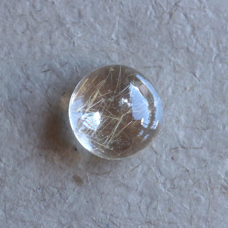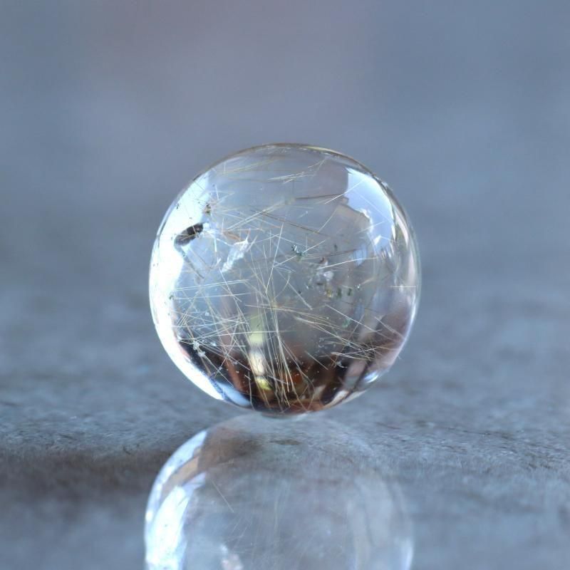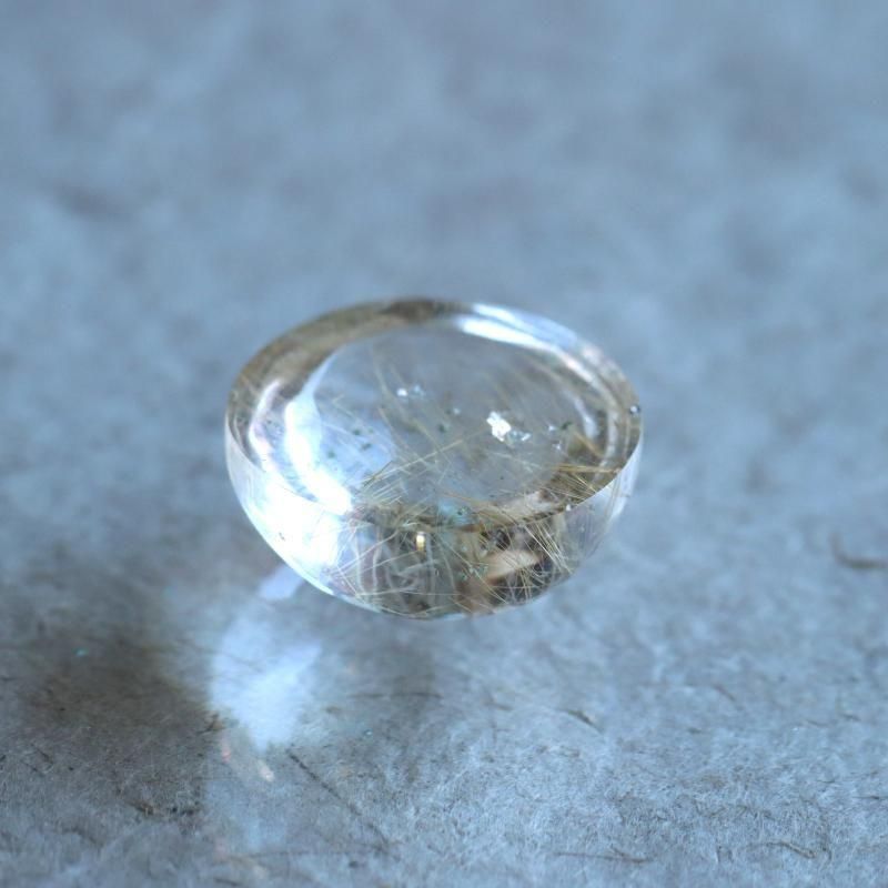 小さな貫入水晶の表面には、角度によって虹が浮かび上がります。