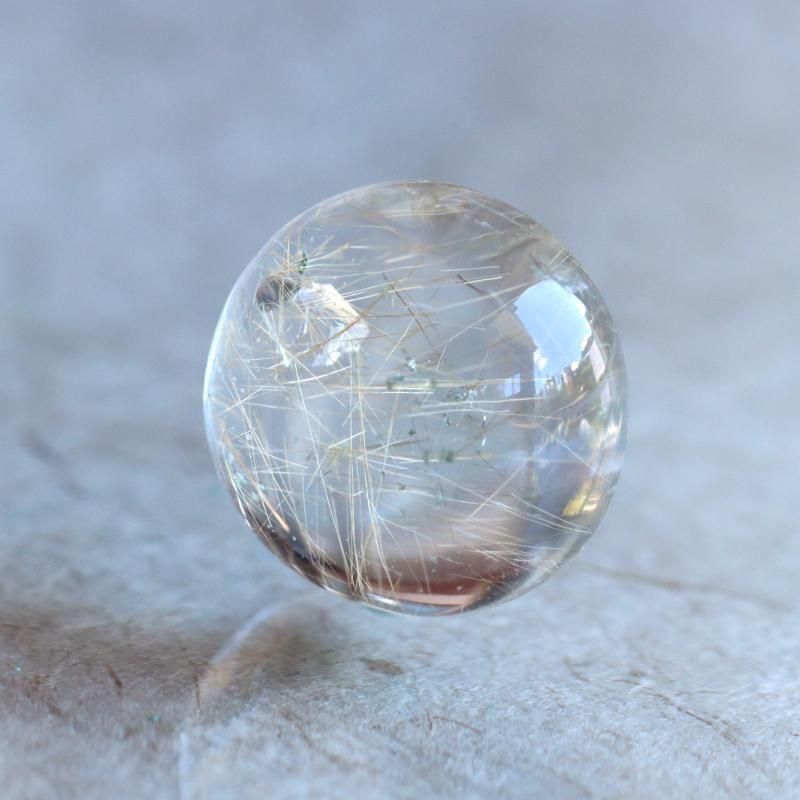 クローライトは深く色鮮やか、ルチルは細く繊細でありオレンジがかった色合い。