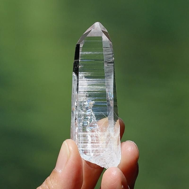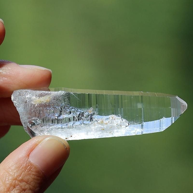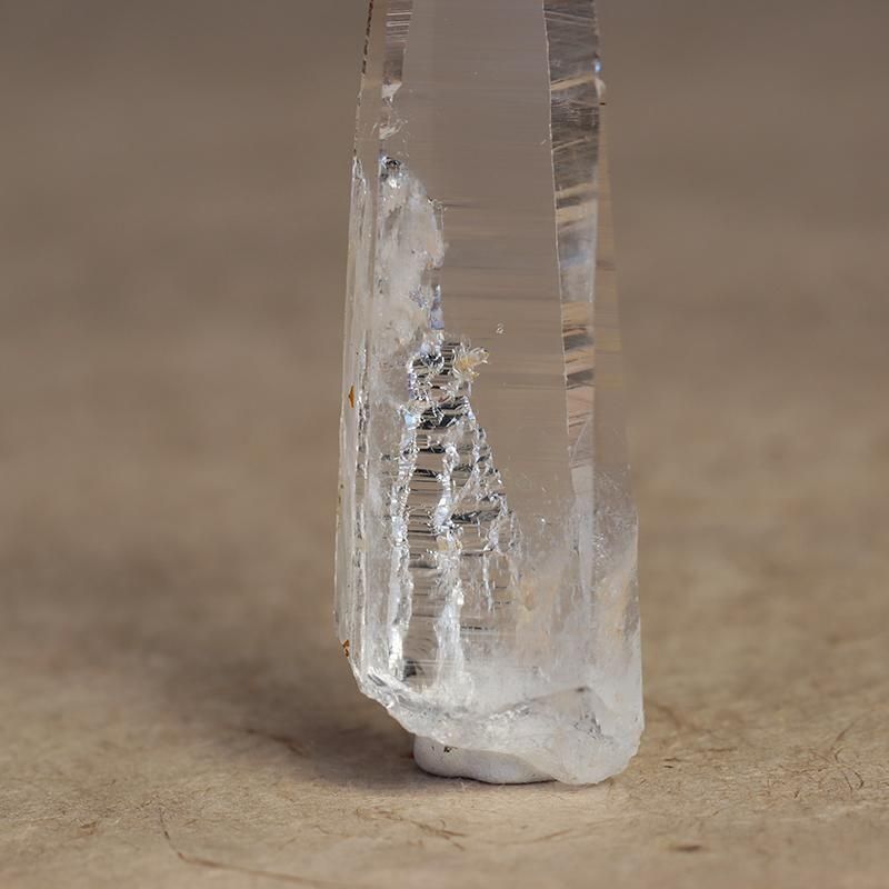 群を抜いた透明感、濡れたような表面の照り、前面に刻まれたリッジ(成長線)が際立つ、