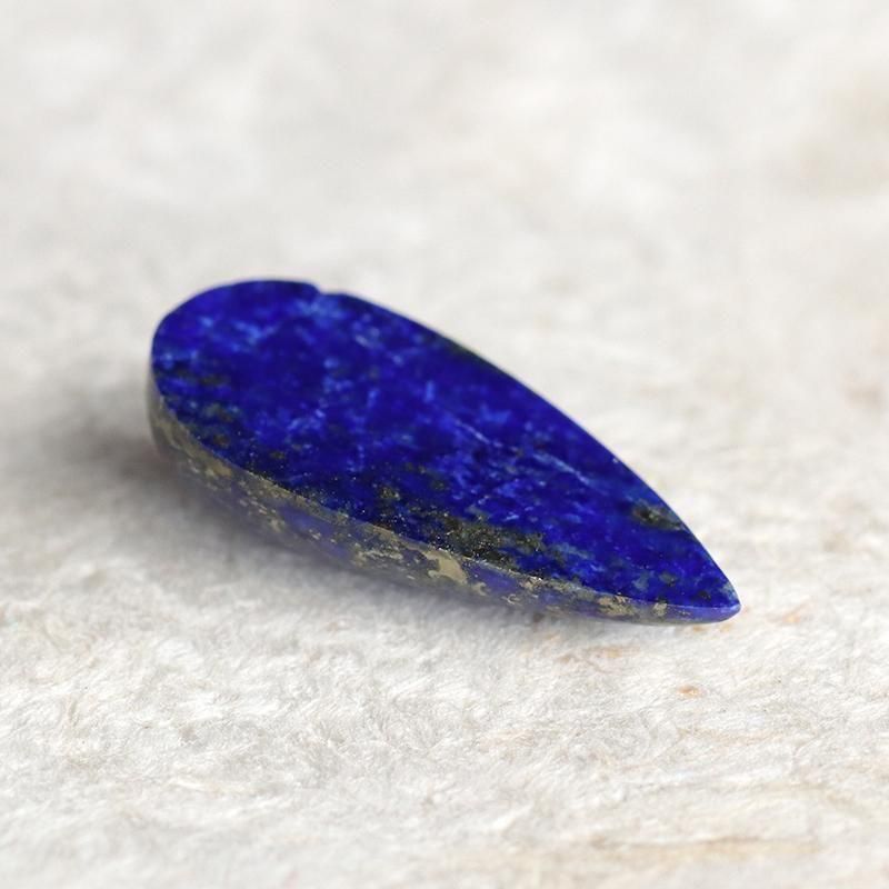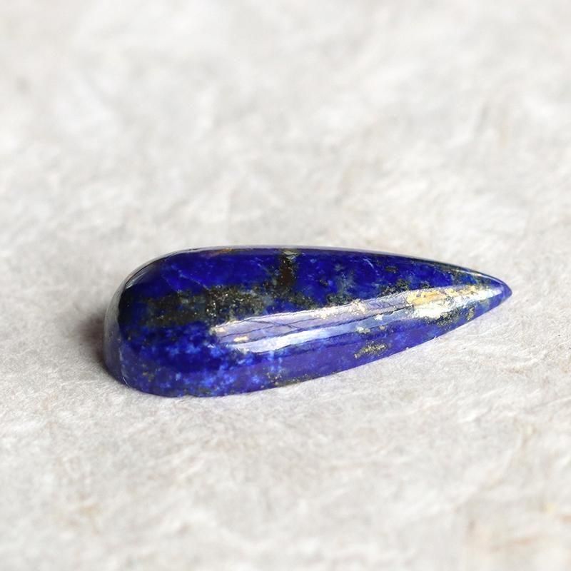 ラピスラズリ ------------------------------ サイズ:21mm×10mm×5mm 重さ:1.7g 産出地:Afganistan ------------------------------ 原石から厳選しカットデザイン、研磨を行って仕上げたラピスラズリのルースです。 ワックスなどのコーティングやカラーの加工の成されていない、 美しい艶と自然の鮮やかな色をお楽しみいただけます。