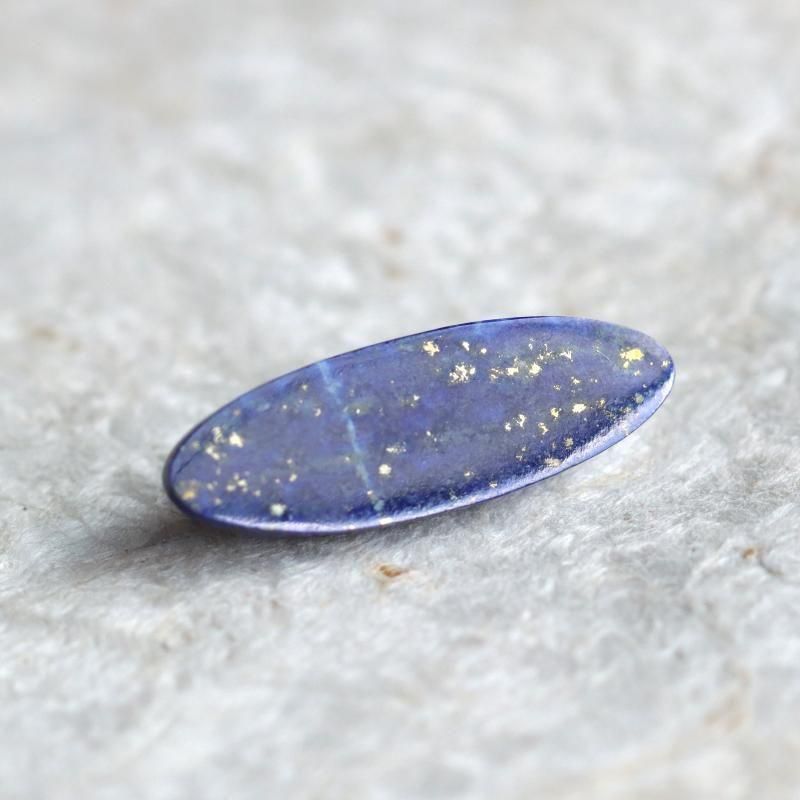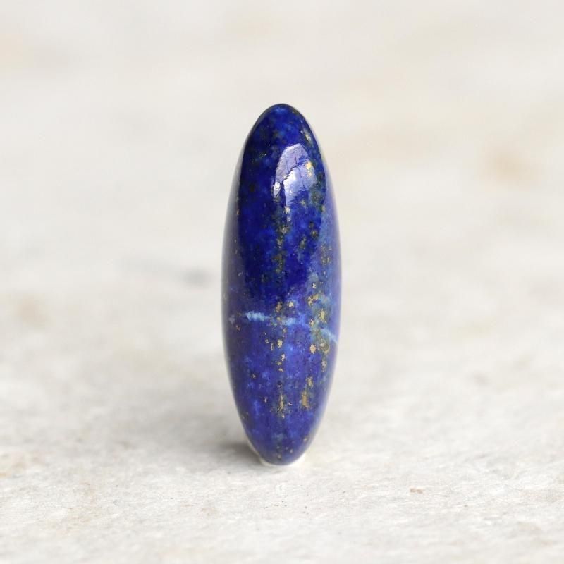 ラピスラズリ ------------------------------ サイズ:21mm×7mm×5mm 重さ:1.4g 産出地:Afganistan ------------------------------ 原石から厳選しカットデザイン、研磨を行って仕上げたラピスラズリのルースです。 ワックスなどのコーティングやカラーの加工の成されていない、 美しい艶と自然の鮮やかな色をお楽しみいただけます。